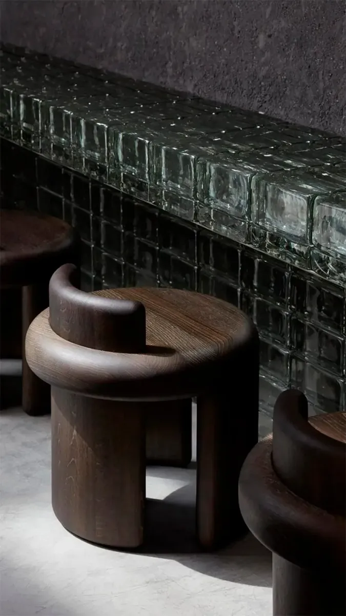 В интерьере — минимализм и преобладание темных тонов. Им занималась команда дизайнеров, которую возглавила Рания Хамид. Благодаря монохромным сочетаниям, натуральным материалам, простым формам и лаконичной мебели удалось воспроизвести атмосферу типичных суши-баров, которые можно встретить в каждом городе Японии.