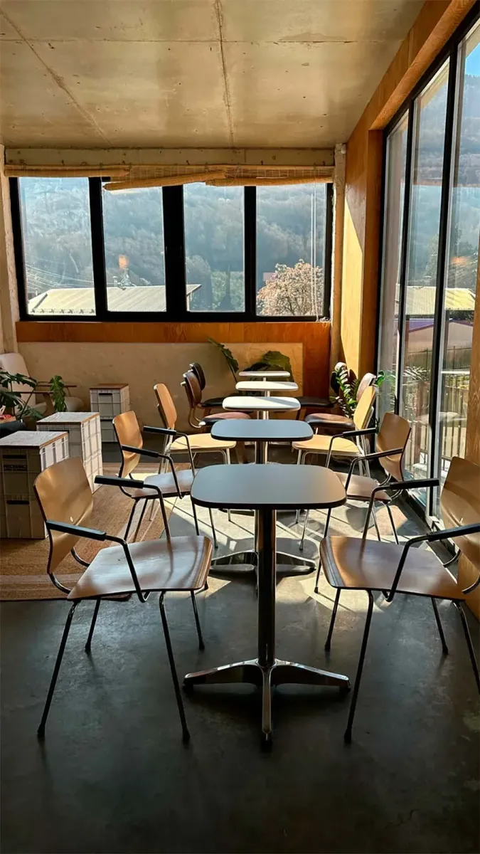 Mechanica — кофейня в центре Красной Поляны с завтраками весь день и спешелти кофе. Внутри — стильный и минималистичный интерьер: большие панорамные окна, теплое дерево, отражающие поверхности и небрежно обработанные потолки.