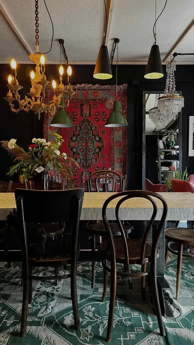 Интерьер напоминает уютную гостиную из 60-х годов. Внутри — винтажные кресла, деревянные столики, лампы с приглушенным светом и минималистические детали, создающие ощущение тепла и ностальгии, на стенах —ковры в ретро стиле. Каждая часть пространства продумана так, чтобы гости чувствовали себя как дома. Здесь можно просто отдохнуть или поработать в специально отведенных зонах, где у каждого столика найдутся розетки.
