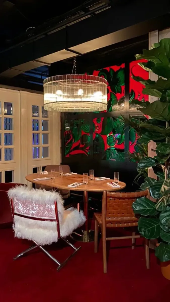 Дизайн интерьера выполнен в современном стиле с акцентом на клубную эстетику. Внутри пространство разделено на два уровня: на первом этаже находится уютная lounge-зона с танцполом, на втором этаже расположен ресторан.
