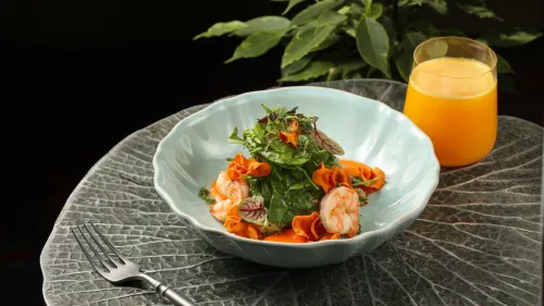 Летнее меню открывают два салата. Первый — с клубникой, спаржей, зеленью и карамелизированной брынзой в хрустящей корочке. Второй — с киноа, авокадо и креветками. Оба отлично подойдут для лёгкого обеда или ужина. В десертной части появился хрустящий круассан с клубничным вареньем и маслом матча. Сочетание сливочной матчи и сладкой клубники делает его универсальным завершением трапезы.