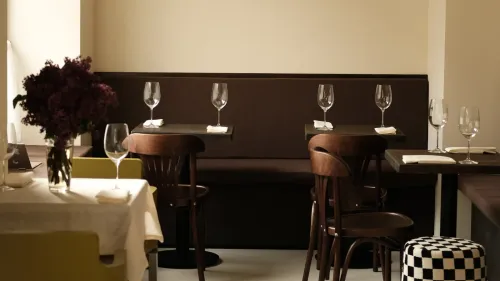 Барную карту дополнили несколькими классическими коктейлями. В том числе здесь можно попробовать mini Negroni — его подают как легкий аперитив. За вино отвечает Миша Ленгер. Он подобрал бутылки из небольших европейских хозяйств, а также добавил в карту проверенную классику. Вина можно пробовать по бокалам или во время дегустаций, которые начнутся этим летом. Также планируются винные ужины — формат предполагает блюда от шефа и вино-пары к каждому из них.