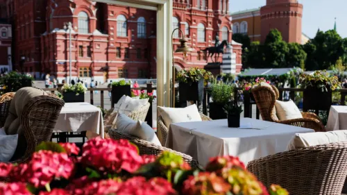 На летней террасе бара «Московский», открывшейся при отеле Four Seasons Hotel Moscow, теперь можно обедать и ужинать с видом на Кремль и Манежную площадь. Панорамный пейзаж стал важной частью атмосферы: он добавляет пространству легкости, а вечерам — особую московскую романтику. Гостей приглашают не только ради вида: в меню — интернациональные блюда с русским характером и коктейли, вдохновленные культурными и архитектурными символами России.