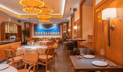 Интерьер разработан студией Krivtsova&Redina. В ресторане четыре зала с продуманным зонированием, выполненные в теплых оттенках. Пространство оформлено так, чтобы не отвлекать от главного – атмосферы и кухни.