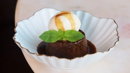 Один из главных десертов меню – «Золотой император». Его подают в виде мусса на основе манго, фрукта, символизирующего богатство и достаток. Манго здесь не просто главный ингредиент – он играет роль вкусового центра блюда и образа, объединяющего кулинарную и философскую составляющие.