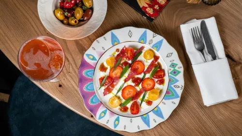В летнем меню появились супы, которые хорошо есть даже в жару. Один из них — окрошка на мацони с тархуном и копчёной грудкой. Другой — крем-суп из батата с имбирём, страчателлой и спаржей. Оба блюда легко усваиваются, хорошо утоляют голод и в то же время не перегружают. Из горячего выделяются шницель из индейки с картофелем с ароматом трюфеля, цесарка с сельдерейным кремом и соусом из яблок, утиное филе с бататным пюре и виноградом, а также филе миньон с соусом бригард и сезонными овощами. Всё подано в сдержанном и современном стиле, без перегрузки деталями, но с упором на вкус.