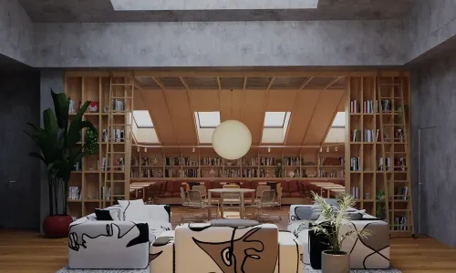 Верхний ярус — пространство для компаний. Тридцать мест среди книжных полок с мангой и артбуками, диваны и пять закрытых тематических залов с почасовой арендой. В одном стены обшиты бархатом и стоит винтажная вертушка, в другом — неоновый бетон и вход через круглый люк, как на подводной лодке, в третьем — розовый плюш и ванна из подушек в форме гигантской миски лапши. Во всех залах есть игровые консоли, караоке и возможность заказать еду из основного зала.
