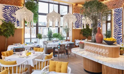 Греческий ресторан от создателей Maroon и Аркадия Новикова. Название несет в себе скрытый и по-своему прекрасный смысл: делать что-то с «мераки» означает вкладывать часть своей души в то, что ты делаешь. На этом, пожалуй, с комплиментами ресторану можно заканчивать. Над интерьером ресторана работала студия Krivtsova & Redina (Gina, Garda, Erwin Патрики), но, к сожалению, он, как и многие детали, завис в яркости нулевых. Внутри пространство разделено на несколько зон, которых, возможно, даже слишком много: зал с открытой кухней, зал с грилем, «винный погреб», зал с арочными окнами и оливковым деревом. Аляпистость чувствуется повсюду: от стен до сервировки. Выглядит дешево при среднем московском ценнике. Смешалось все: лепнина, кирпичная кладка, роспись, картины и тарелки на стенах, деревянные потолки. Есть ощущение, что с попыткой создать атмосферу заигрались.