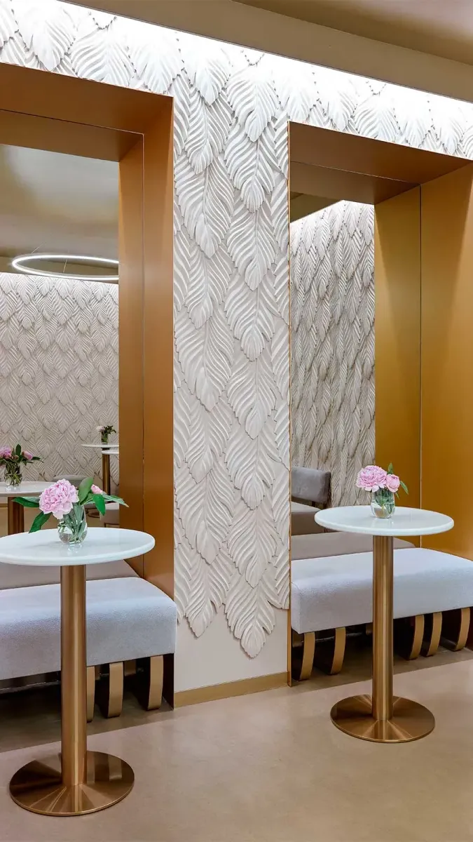 Помещение делится на две части. В первой можно рассмотреть десерты и выбрать понравившийся, а во второй — расположиться за белыми круглыми столиками, как в парижских бистро.