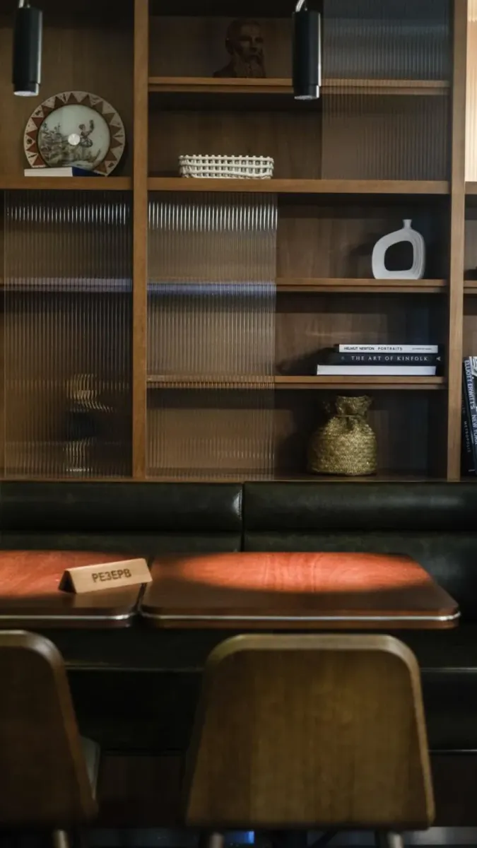Интерьер ресторана выдержан в современном стиле с элементами лофта. В зале органично сочетаются классические столы и барная зона, большие окна наполняют пространство естественным светом.