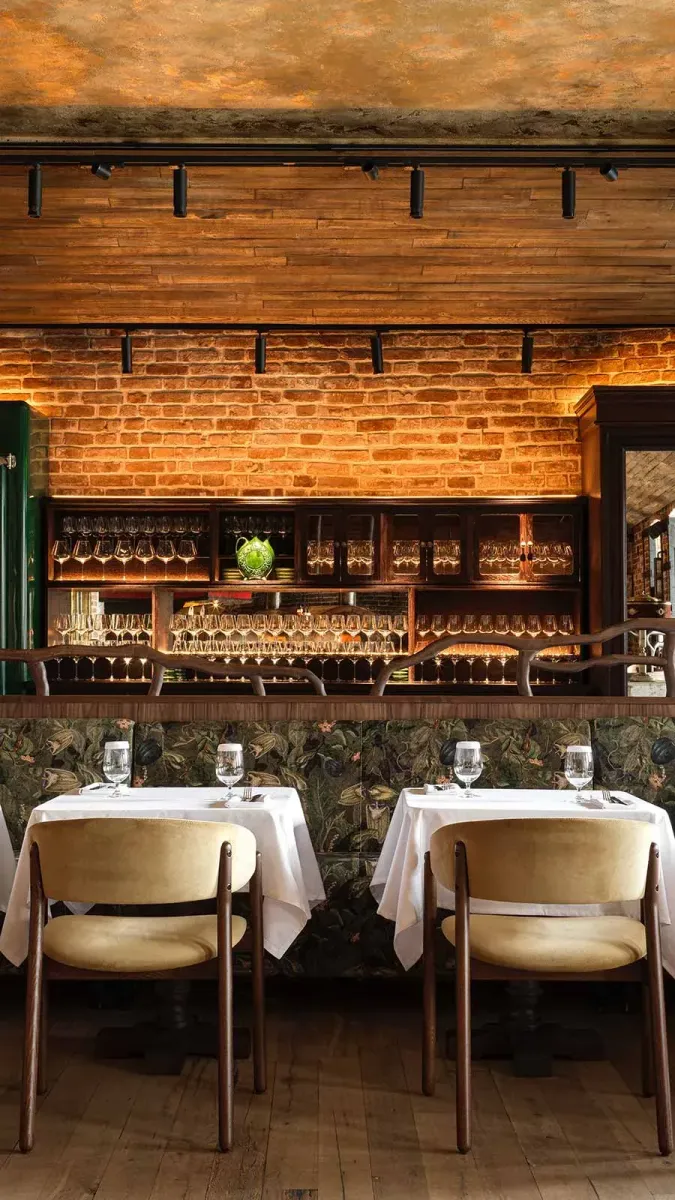 На Страстном бульваре Дмитрий Романов и Вениамин Иванов из Folk Team выстроили маленький Пиренейский полуостров. Padron — ресторан, который одновременно переносит в Мадрид, Лиссабон и Барселону, не требуя загранпаспорта. Здесь два мира живут по соседству: зал ресторана с иберийской кухней, переосмысленной через призму современных техник, и камерный спикизи-бар, спрятанный за отдельным входом. Атмосфера считывается мгновенно — грубая кирпичная кладка, чугун, керамика на балконе и уличные фонари воскрешают дух южноевропейских улочек. В баре своды расписаны плиткой азулежу, а стойка повторяет знаменитый жёлтый трамвай, курсирующий по холмам Лиссабона.