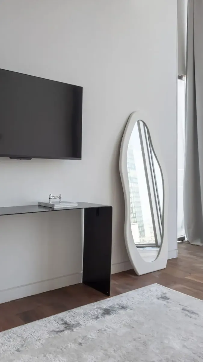 Дизайн интерьера выполнен в светлых тонах, создающих приятную атмосферу. Внутри — просторное помещение с высокими потолками, большие удобные кровати, эксклюзивная дизайнерская мебель, ростовое зеркало, индивидуальное освещение и минималистичные детали, добавляющие пространству уникальность. Из номеров открываются панорамные виды на достопримечательности Москвы.