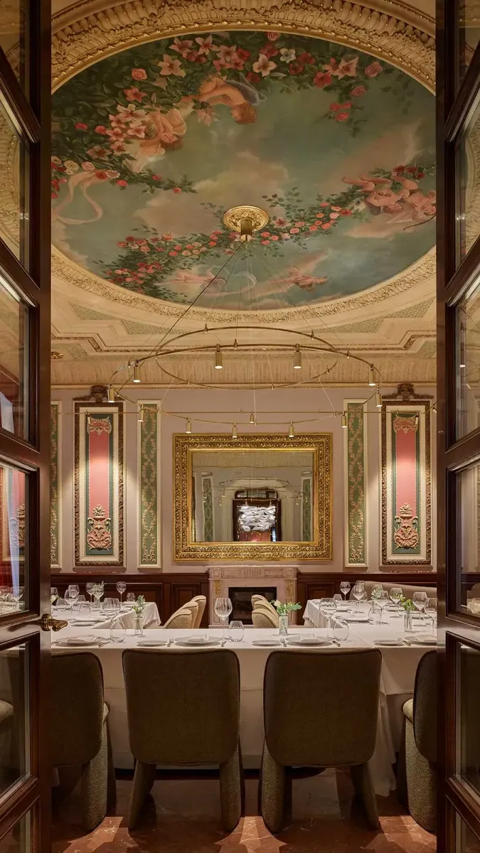 Роскошный интерьер в стиле рококо до сих пор не теряет своей актуальности и отсылает к старым Grand Café с улиц Парижа, в то же время напоминая мишленовские рестораны вроде Plaza Athenee. Потолочные росписи, венецианские зеркала, лепнина в стиле версальских дворцов, многоярусный фонтан. Историю сохранили и гармонично объединили с современными деталями. Архитектурное бюро Марии Жуковой добавило пространству еще больше элегантности с помощью мебели, летящей многослойности и освещения.