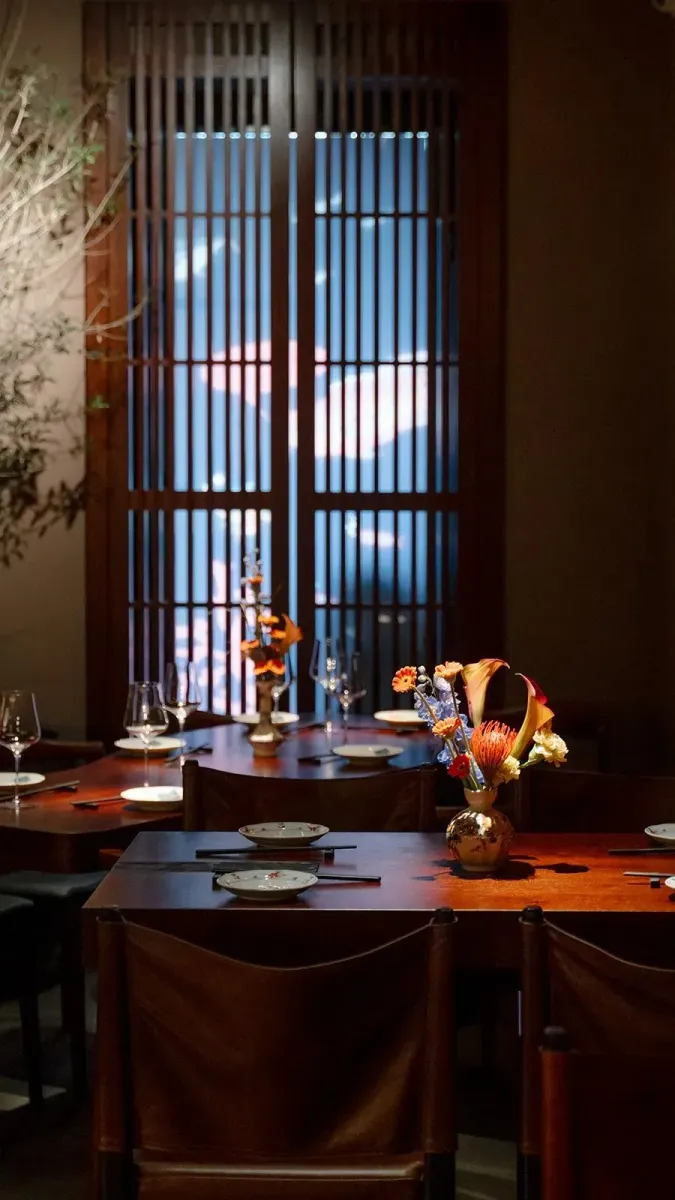 Особое внимание уделено гармонии с природой, что подчеркивается оливковым деревом, мягким освещением и красивыми ширмами.