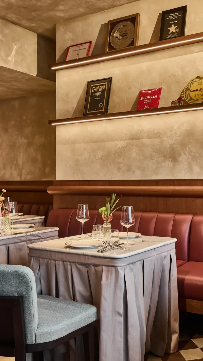 UILLIAM'S на Цветном бульваре возвращается как ресторан с историей и устойчивой репутацией. Проект перезапустили Антон Пинский и Уиллиам Ламберти. Пространство сохраняет характер: состаренные стены, винтажные столы со скатертями в пол, роспись на потолке с отсылкой к классическим европейским интерьерам.