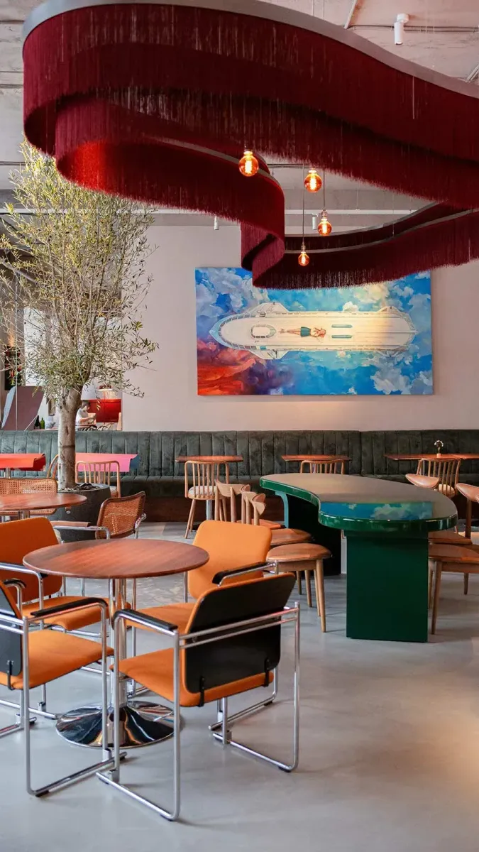 Винное бистро от команды Berezka Group, вдохновленное культурой и атмосферой 60-х, временем рок-н-ролла и расцвета футуристического дизайна.