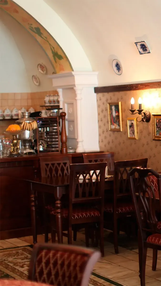 В барном меню, помимо вина, найдутся и традиционные крепкие напитки — клюквенная настойка и хреновуха. Атмосфера Пяткина словно переносит в другое столетие — здесь нет привычного для ресторанов пафоса и напыщенности, часто звучит живая музыка и кажется, что время немного замедляется.