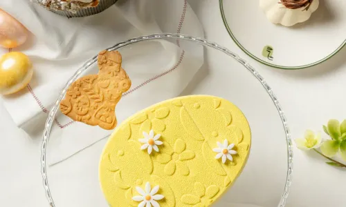 В центре коллекции — творожная пасха в форме яйца с кремовой основой, цукатами, вяленой вишней и белым шоколадом. К ней прилагается миндальное сабле в виде кролика. Рядом — миланский панеттоне на воздушном дрожжевом тесте с мёдом и цедрой апельсина: поверхность покрыта лепестками миндаля и жемчужным сахаром. Для тех, кто предпочитает что-то компактнее, — творожные сырки с начинкой из маракуйи и пасхальный кекс на бездрожжевом тесте с цукатами и изюмом.