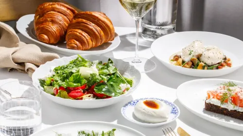 Основу завтраков составляют овощные салаты: кейл с помело, цветная капуста с базиликом и йогуртом, рукола с грушей и страчателлой, киноа с тыквой и фетой. Это не закуски, а полноценные утренние блюда, в которых сочетаются яркий вкус и текстура. Подойдут и тем, кто предпочитает начать день с чего-то освежающего.