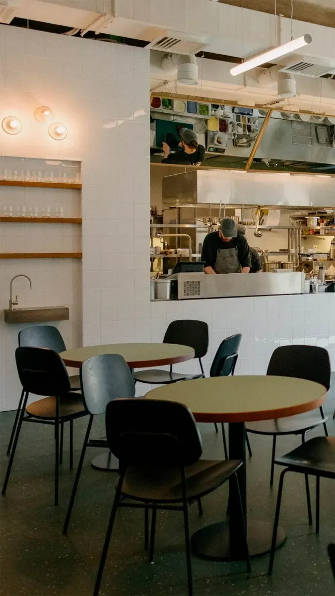 В меню — понятная еда на каждый день, большой выбор завтраков и, конечно, выпечка, за которой выстраивается очередь. В утреннем меню — три раздела: классические завтраки вроде скрэмбла с трюфелем и копченым сулугуни, английского завтрака и яичницы менемен с датской булочкой; раздел «на хлебе» с бутербродами и тостами; сладкие завтраки. В основном меню найдутся закуски и салаты, а также горячие блюда: ризотто с шафраном и креветками, цыпленок с нутом, стейк из говядины с брокколи. В разделе напитков — кофе: классика и альтернативные варианты, чай, сезонные напитки, соки и лимонады.