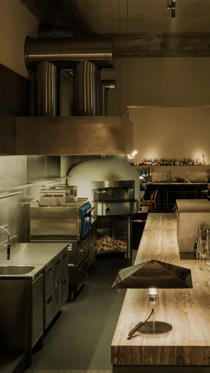 В основе концепции — открытый огонь как центр кухни и всего пространства.